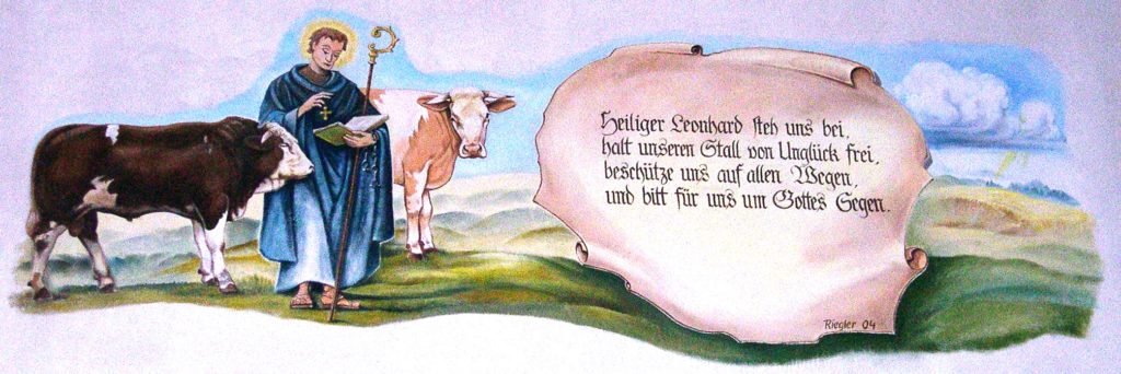 Der heilige Leonhard gilt als Schutzpatron für das Vieh, insbesondere für die Pferde. Der Volksmund verlieh ihm die Beinamen „bayerischer Herrgott“ oder „Bauernherrgott“.